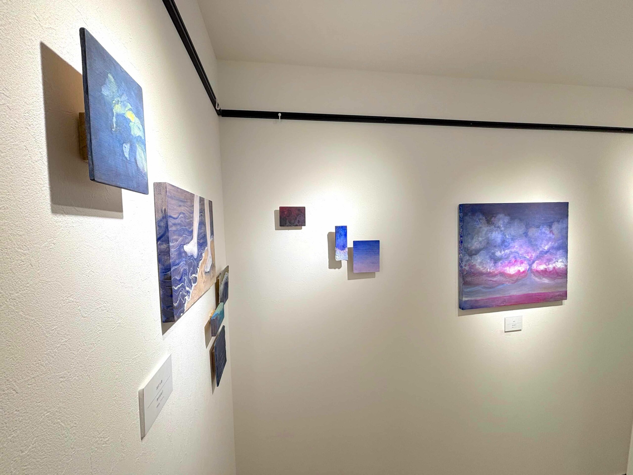 青や紫、淡いピンクが溶け合いながら、空や水面、そして夢の断片を思わせる。